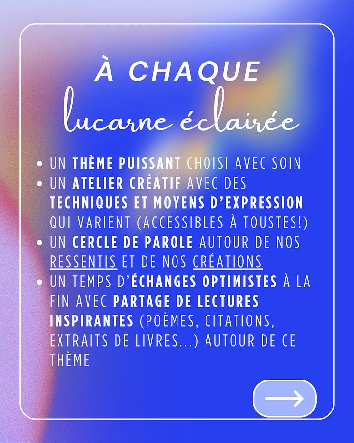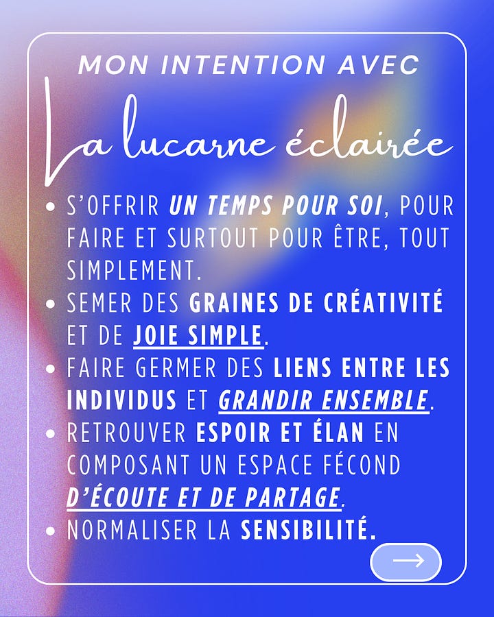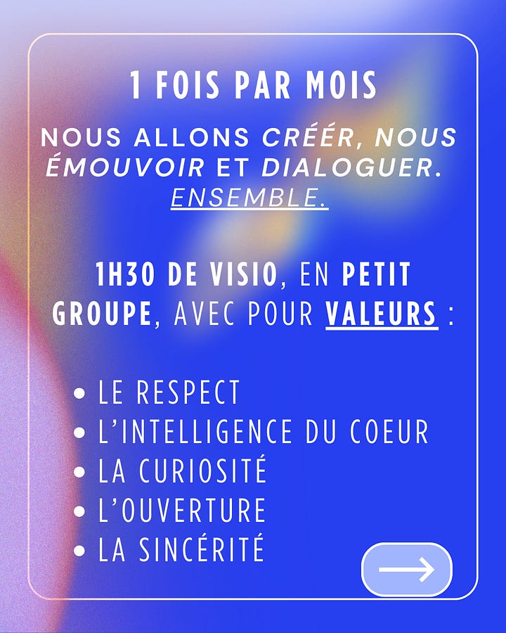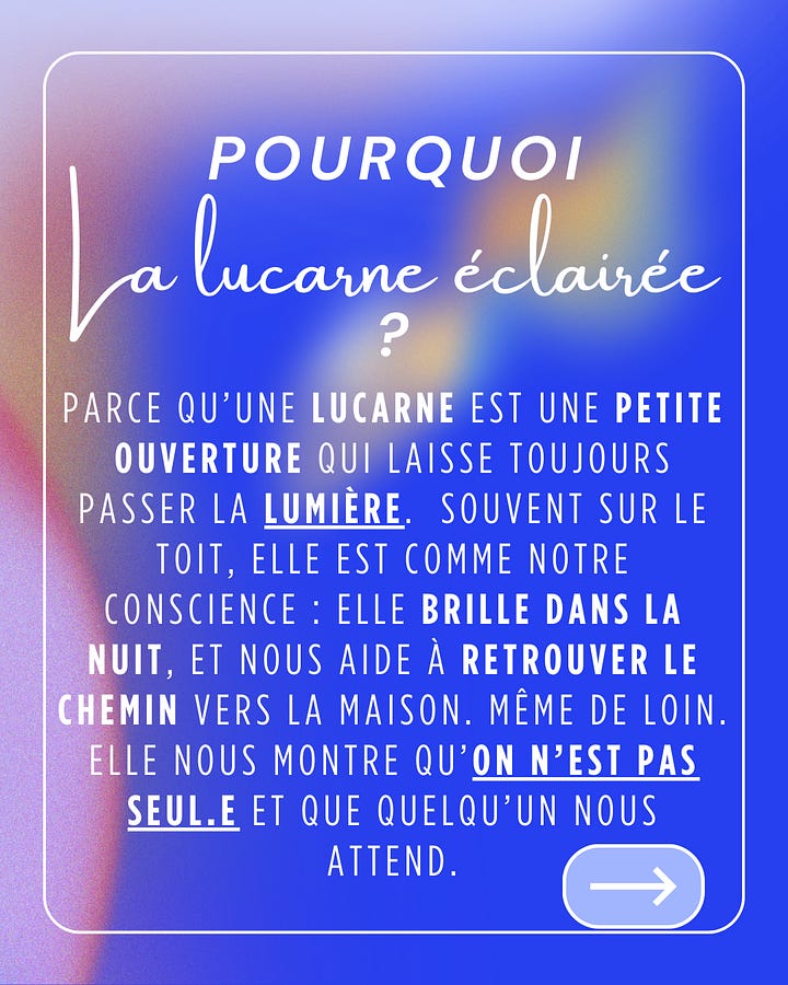 Je lance un RDV mensuel : la Lucarne Éclairée. Il s’agit d’une visio créative et d’échanges, de 1h30 par mois, à prix libre et conscient. Je t’explique tout ici :